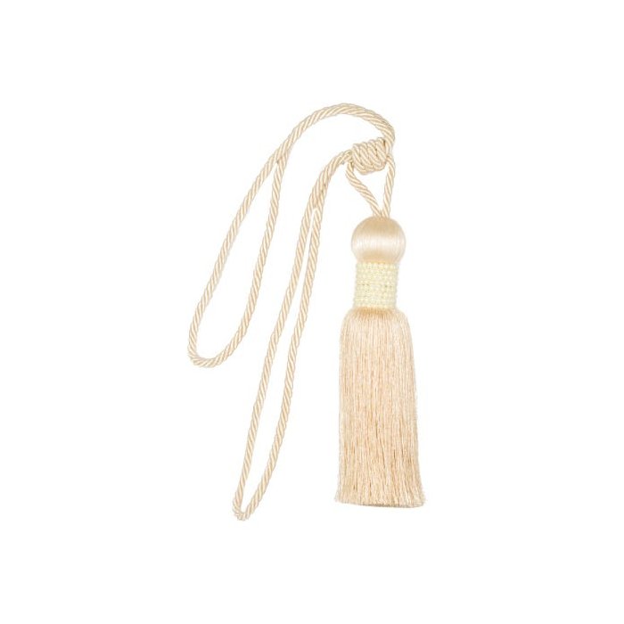 Descrição: Pingente para cortina bege com detalhe em pérolas