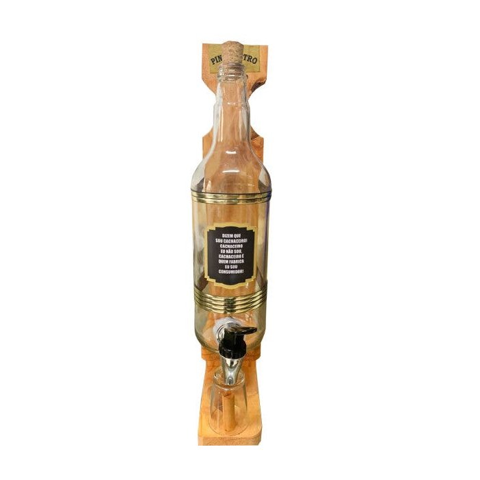 Acompanha rolha com cabeça de madeira torneada. Torneirinha cromada e automática, fixada com cola especial de alta aderência e índice ZERO de vazamento. Acompanha copinho de dose de acrílico.