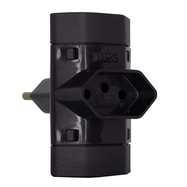 Pino Multiplicador Adaptador Benjamin 2p+t 10a Certificado Preto