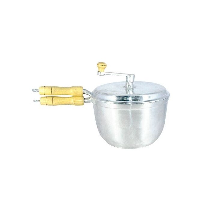 Pipoqueira Alumínio Fundido Polida Cabo Madeira N22 Alumínio