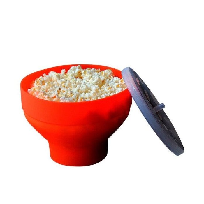 A Pipoqueira de Silicone é exclusiva para ir ao micro-ondas, e possui uma tampa que se ajusta a quantidade de pipocas estouradas.