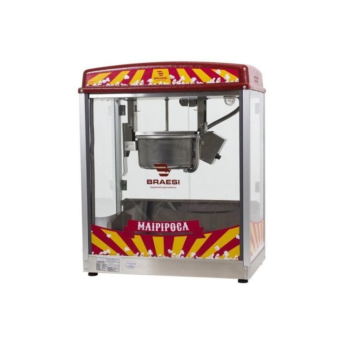 Máquina de Fazer Pipoca Industrial Braesi A pipoqueira eletrica profissional Braesi BMP 150 é ideal para quem trabalha com festas e eventos, buffets infantis, quem trabalha como vendedor ambulante ou quem deseja ganhar uma renda extra na venda de pipoca doce e salgada em locais onde há fluxo de pessoas. Com capacidade de 3 kg de pipoca por hora trabalhada, a pipoqueira profissional elétrica é um produto com um ótimo custo benefício para o seu negócio, aprovado pela Anvisa. A pipoqueira Braesi pode ser colocada em cima de uma bancada ou de um carrinho ambulante. Com esta pipoqueira, você poderá fazer deliciosas pipocas doces, salgadas, coloridas e diversos outros sabores como: bacon, queijo, calabresa e muito mais. A estrutura da pipoqueira profissional é em aço inoxidável, as portas e vitrines são feitas em vidro temperado, resistentes a altas temperaturas. Equipada com panela pipoqueira em inox com tampa e parte interna em alumínio, com capacidade para 150 g de milho de pipoca a cada vez (tempo médio de estouro de 3 minutos), que são mexidos com o conjunto misturador estanhado. Dentro da pipoqueira industrial eletrica existe uma resistência inferior com potência de 140W, blindada e resistente a queima, para manter a pipoca aquecida. A resistência da panela tem potência de 1200W, também é blindada e atinge até 180º C, o suficiente para arrebentar as pipocas rapidamente. Seu consumo é de 1,1kW/hora, que faz desta pipoqueira uma das mais econômicas e eficientes do mercado. Esta pipoqueira vem equipada com termostato para controle automático da temperatura e com lâmpada interna para iluminação. O tempo inicial de aquecimento é de 5 a 6 minutos e o tempo estimado de estouro das pipocas é em média 3 minutos. A produção por hora é de cerca de 3kg de pipoca ou 6 saquinhos de 300g. Ao comprar esta pipoqueira eletrica industrial Braesi você recebe junto um manual que auxilia seu trabalho. Essa máquina de fazer pipoca profissional é fabricada no Brasil e possui certificado pelo Inmetro com proteção de temperatura, aprovado pela Anvisa, totalmente seguro para trabalhar! Itens Inclusos: - Lâmpada - Resistência - Panela - Manual e Termo de Garantia Informações Técnicas: Modelo BMP-150 I Capacidade da panela e tempo 150 g a cada 3 minutos (em média) Capacidade de produção em kg/h 3 kg em uma hora ou 6 saquinhos de milho de 500 g Potência 1000W Consumo de energia 1,1kW/h Tensão (voltagem) 110V ou 220V Garantia 6 meses Medidas: Altura 68 cm Largura 56 cm Comprimento 36 cm Peso 13 kg
