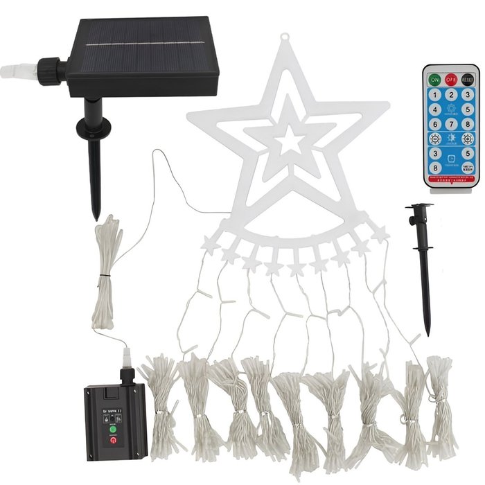 1 Cortina Grande Solar Com Topo De Estrela Com 9 Cordões Com LEDs Amarelo;