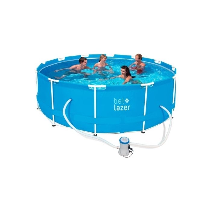 DescriçãoPiscina de Armação 10.000 Litros + Bomba 110V + Filtro + Lona + Cobertura Armação de metal resistentes à ferrugem Paredes laterais com espessura tripla de PVC e poliéster resistente Kit reparo resistente incluso Ref. 510200 - 10000 L + Filtro + Cobertura + Forro - 110 v Diâmetro 3,66 metros x 1 metro profundidade Cor única Qt por caixa: 1 unidade