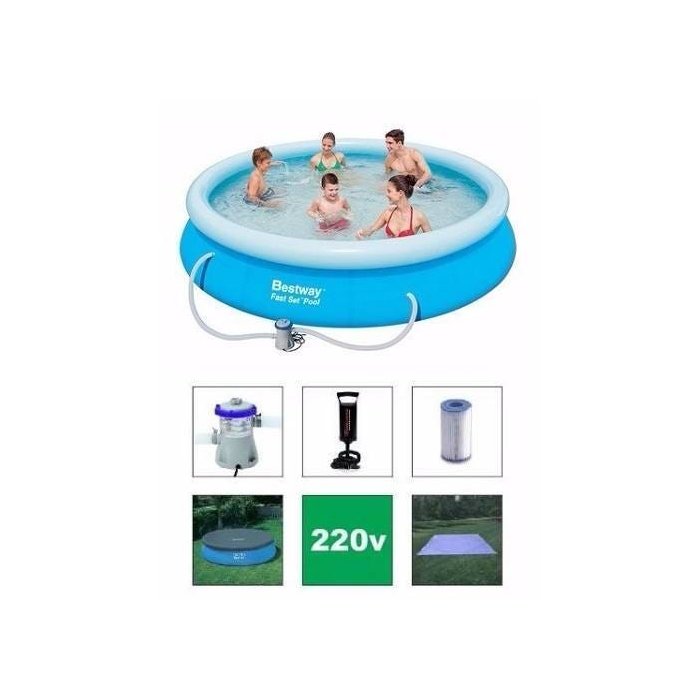 Piscina Bestway 5377 Litros com Bomba Filtrante 220v Bomba Inflar Capa e Forro