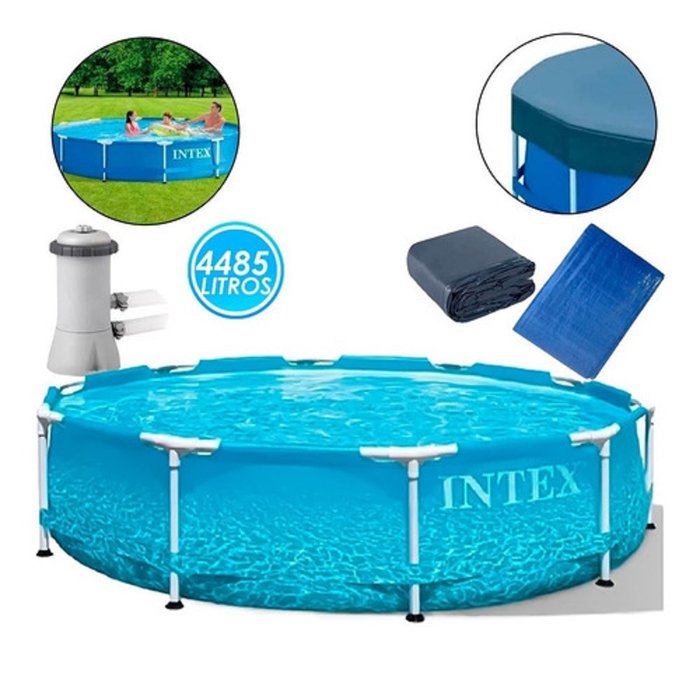 - Para uso em piscinas Intex de armação de metal de 4485 litros redonda, ou de outras marcas, desde que o diâmetro seja similar a 3,05 metros