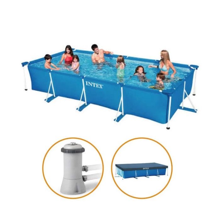 Piscina Estrutural Retangular 7.127 Litros Com Filtro + Capa Pvc Armação Intex - 220V