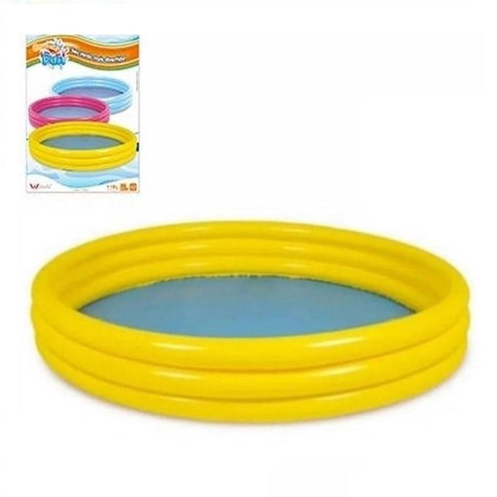 PISCINA INFANTIL 118 LITROS GRANDE 99CM VERAO BOIA INFLAVEL AMARELO BEBE 3 ANEIS REDONDA Amarelo