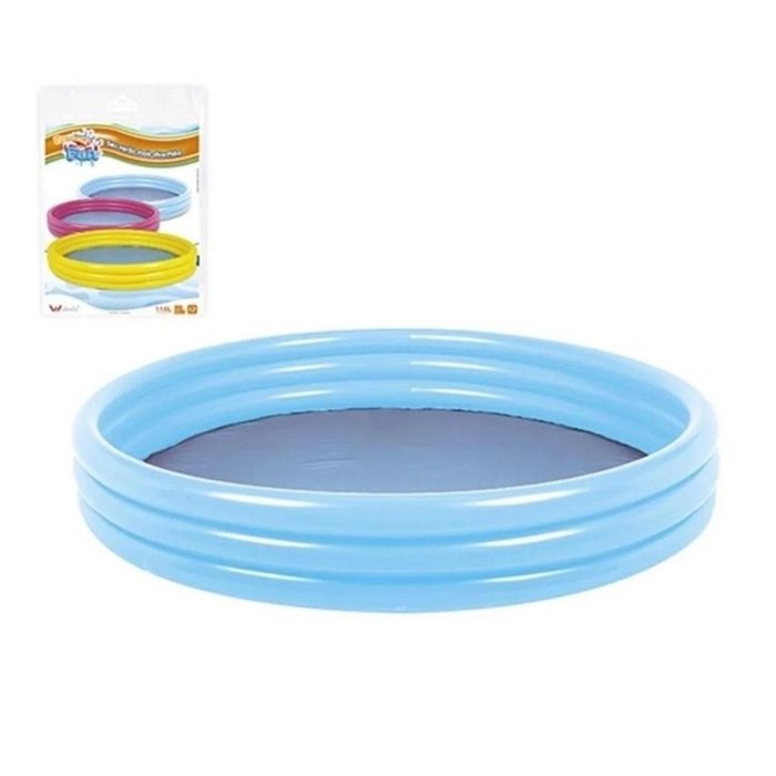 PISCINA INFANTIL 118 LITROS GRANDE 99CM VERAO BOIA INFLAVEL AZUL BEBE 3 ANEIS REDONDA