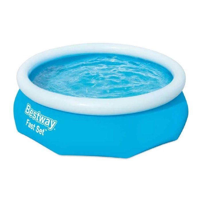 A piscina Fast Set da Bestway tem capacidade para 3800 litros!Nessa capacidade, acomoda tranquilamente até 8 pessoas com total conforto e segurança para curtirem e aproveitarem todo o calor e sol do verão.Facilmente inflada, ela quando desmontada é super compacta. Para enche-la, basta usar uma bomba de ar e posteriormente colocar água até as medidas informadas. Sem grandes segredos!Possui saída para bomba de manutenção e piso extra resistente. Sua borda abaulada, traz maior conforto aos usuários, assim como o seu formato circular, que permite melhor aproveitamento do espaço.Acompanha kit de repara incluso, em caso de emergênciaSe utilizado apenas por crianças, indicamos a supervisão de um adulto.Informações gerais:• Material: Vinil resistente• Capacidade: 3800 litros• Peso: 7,5kg• Formato: Circular• Marca: Bestway