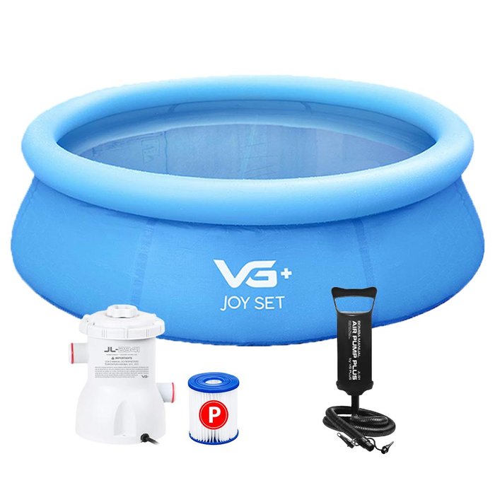 Desfrute de momentos refrescantes e divertidos no conforto do seu próprio quintal com a Piscina Inflável Joy Set da VG Plus. Ideal para famílias e amigos, esta piscina inflável combina praticidade e durabilidade, oferecendo uma solução acessível para relaxar e se divertir durante os dias quentes. Para assegurar a longevidade da sua piscina, é importante mantê-la limpa e protegida de objetos pontiagudos ou superfícies ásperas que possam causar danos. Após o uso, esvazie a piscina, limpe-a e deixe-a secar completamente antes de armazená-la.