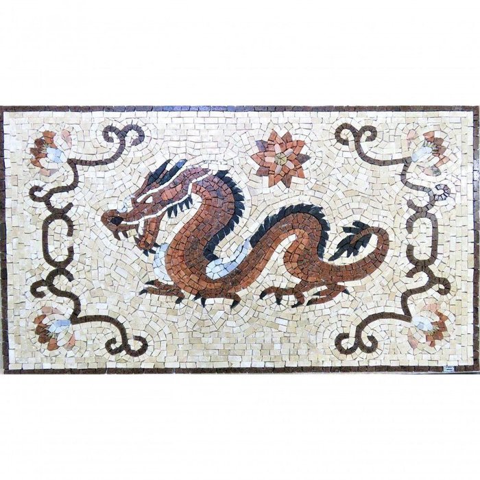 Piso Em Mosaico Dragão Chines Furioso Tamanho 130x190cm
