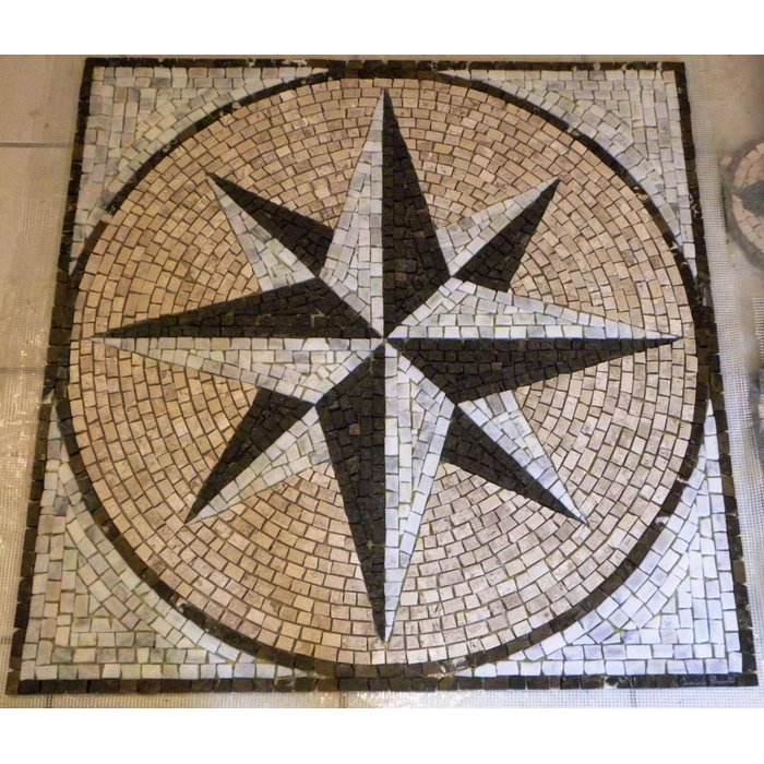 Piso Rosa Dos Ventos Em Mosaico Marmores Quadrado - 60 cm