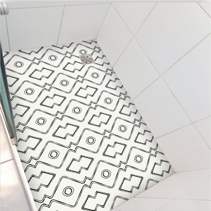 O Piso adesivo vinilico antiderrapante para box de banheiro branco com traços indigenas é um produto da Colacomigo que, além de lindo, é antiderrapante, impermeável e dá conforto térmico. Agora você pode tomar banho descalço, sem escorregar e sem sentir o piso frio nos pés. Peça logo o seu!
