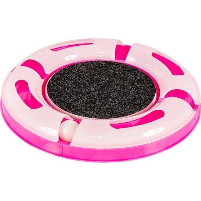 Brinquedo interativo no qual uma bolinha corre dentro de um trilho fechado deixando apenas alguns vãos para que o gato tente capturá-la com as patinhas, e ainda conta com um carpete central de arranhador e chocalho (no modelo 8 partes).