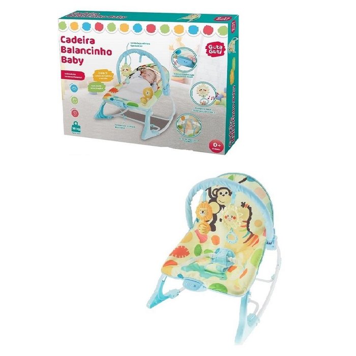 A cadeira balancinho baby estimula o desenvolvimento da visão, audição e tato do bebê.