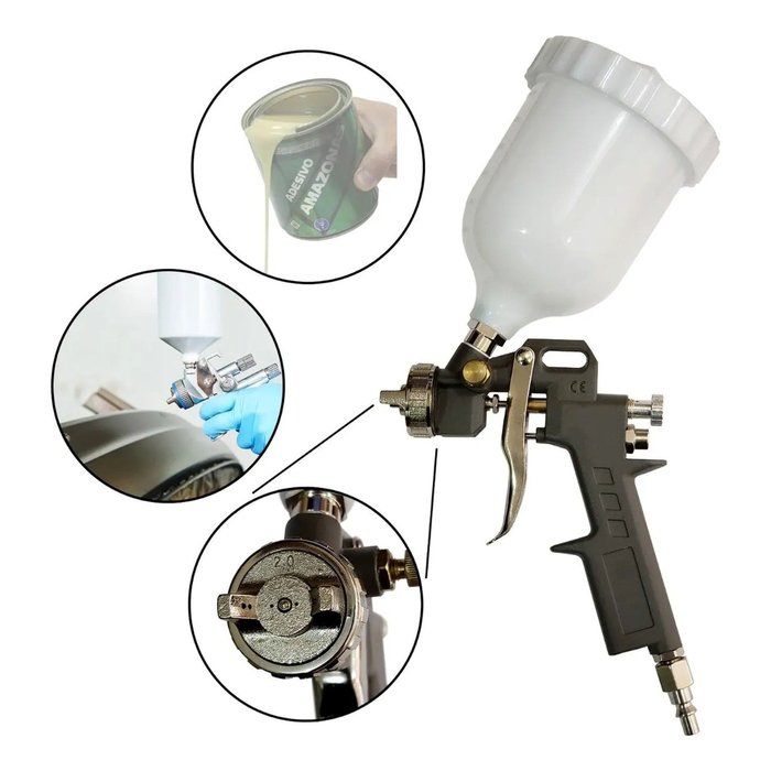 Com bico de 1,5mm e copo superior de 500ml, ela trabalha muito bem com tintas de média viscosidade, garantindo pulverização uniforme, menos desperdício e ótima produtividade.