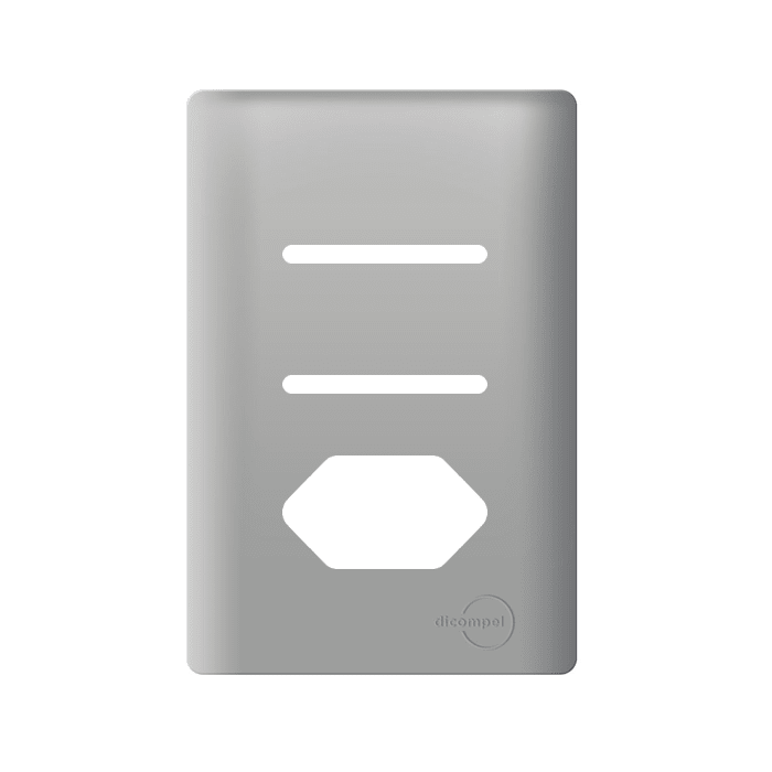 Placa 4x2 para 2 Interruptor + 1 Tomada Prata - Novara Prata