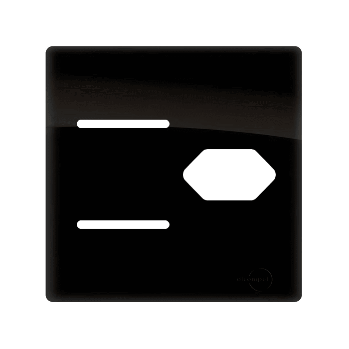 Placa 4x4 para 2 Interruptor + 1 Tomada Preto Brilho Novara Preto