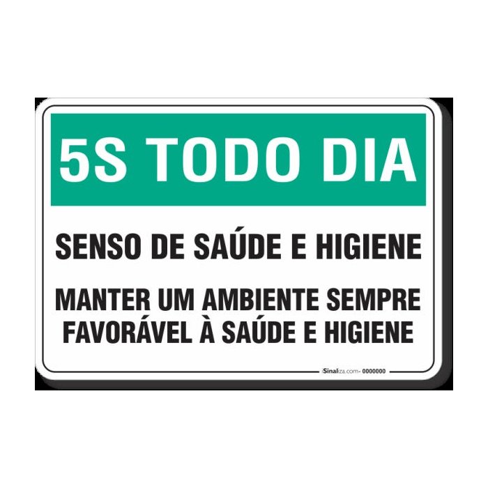 PLACA 5S TODO DIA - SENSO DA SAÚDE E HIGIENE