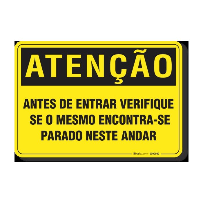 PLACA ATENÇÃO ANTES DE ENTRAR VERIFIQUE SE O MESMO ENCONTRA-SE PARADO NESTE ANDAR