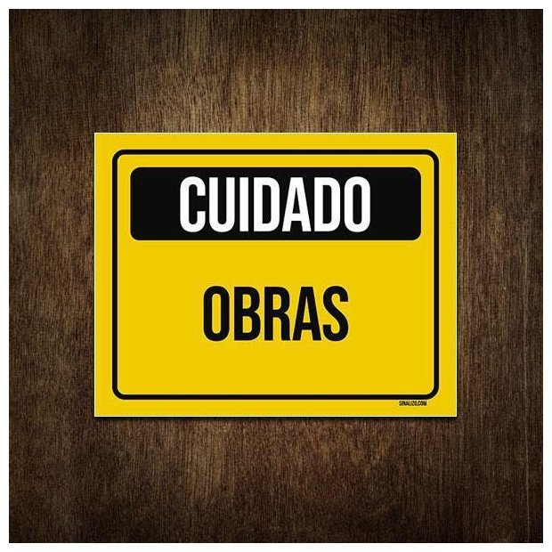Placa Atenção Cuidado Sinalização Obras 27x35