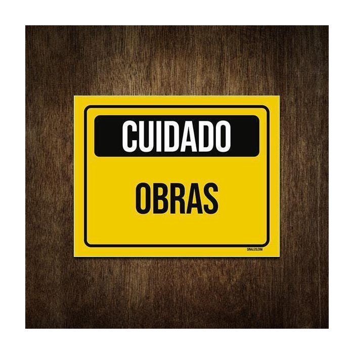Placa Atenção Cuidado Sinalização Obras 36x46