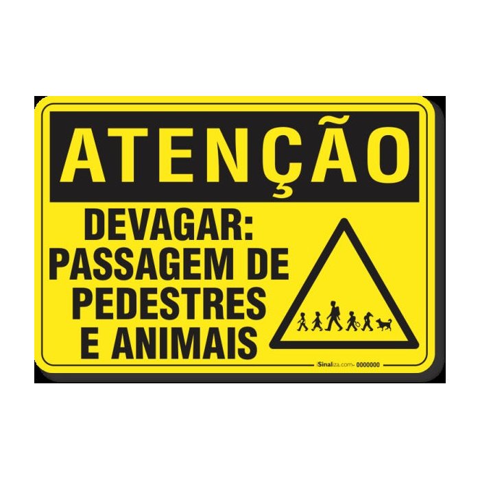 PLACA ATENÇÃO DEVAGAR PASSAGEM DE PEDESTRES E ANIMAIS
