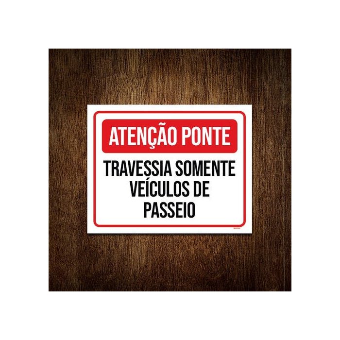 Placa Atenção Ponte Travessia Somente Veículos Passeio 27x35