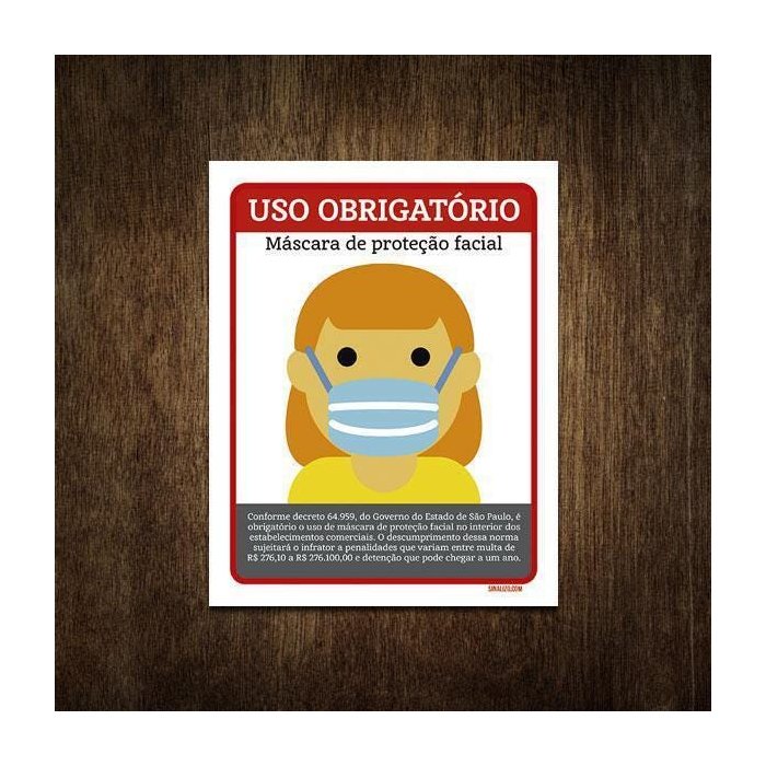 Placa Atenção Uso Obrigatório Máscara Proteção Facial 27x35