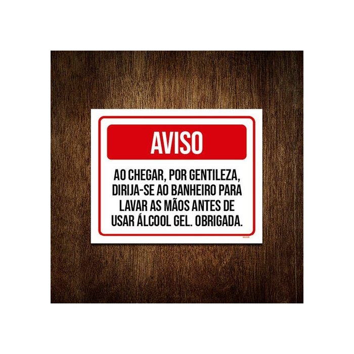 Placa Aviso Ao Chegar Lave As Mãos Antes Álcool Gel 27x35