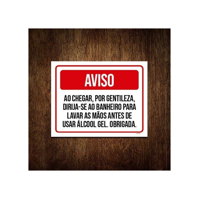 Placa Aviso Ao Chegar Lave As Mãos Antes Álcool Gel 36x46
