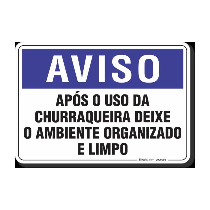 PLACA AVISO APÓS O USO DA CHURRASQUEIRA DEIXE O AMBIENTE ORGANIZADO E LIMPO