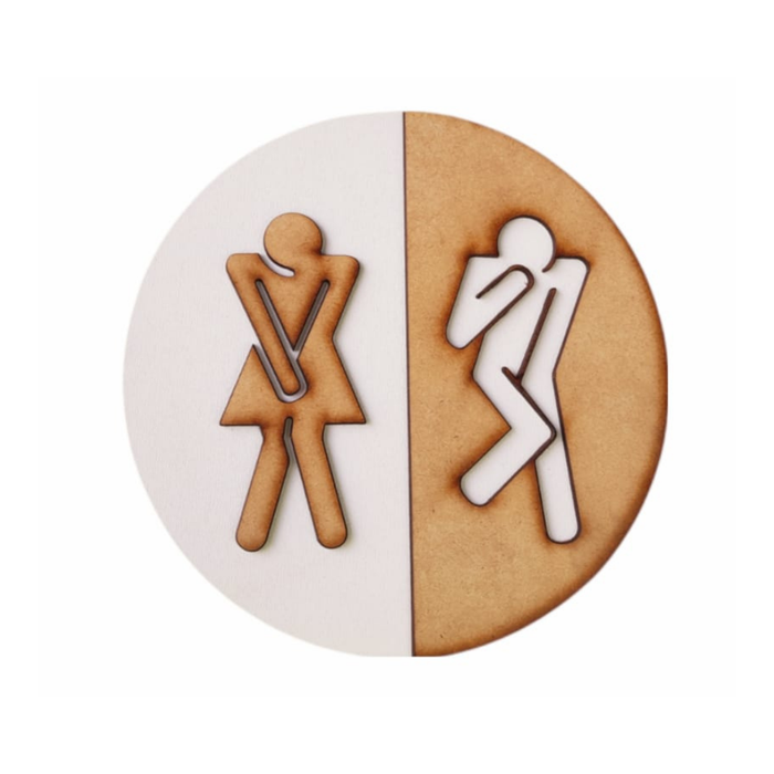Placa Aviso Banheiro Segura Xixi Madeira Branca Em Relevo Natural Divertida