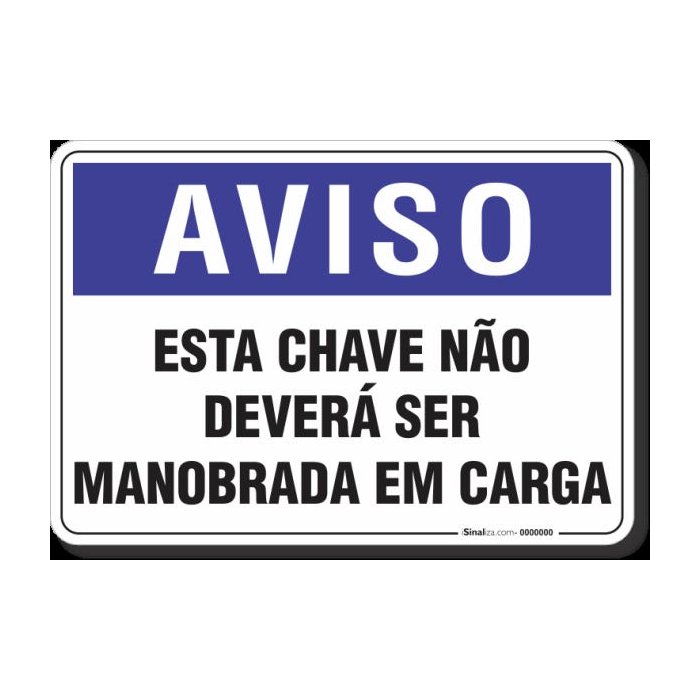 PLACA AVISO ESTA CHAVE NÃO DEVERÁ SER MANOBRADA EM CARGA
