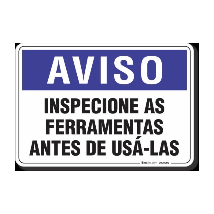 PLACA AVISO INSPECIONE AS FERRAMENTAS ANTES DE USÁ-LAS
