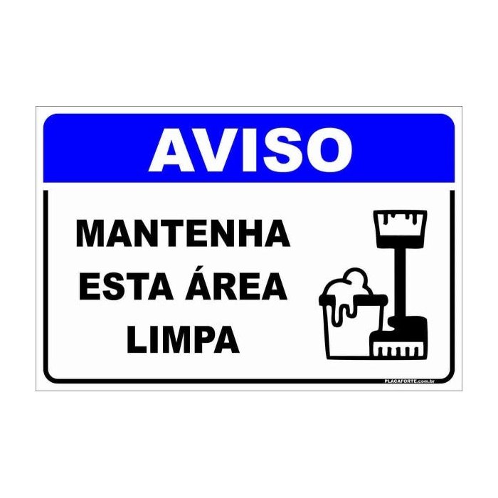 Placa Aviso - Mantenha Esta Área Limpa - PVC 2mm 40x60