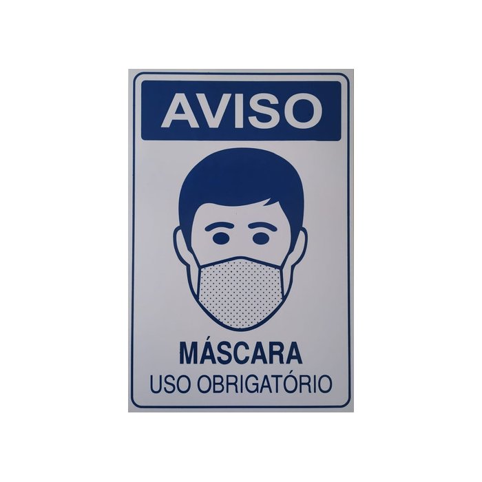 Placa Aviso Mascara Uso Obrigatorio Uni. Azul