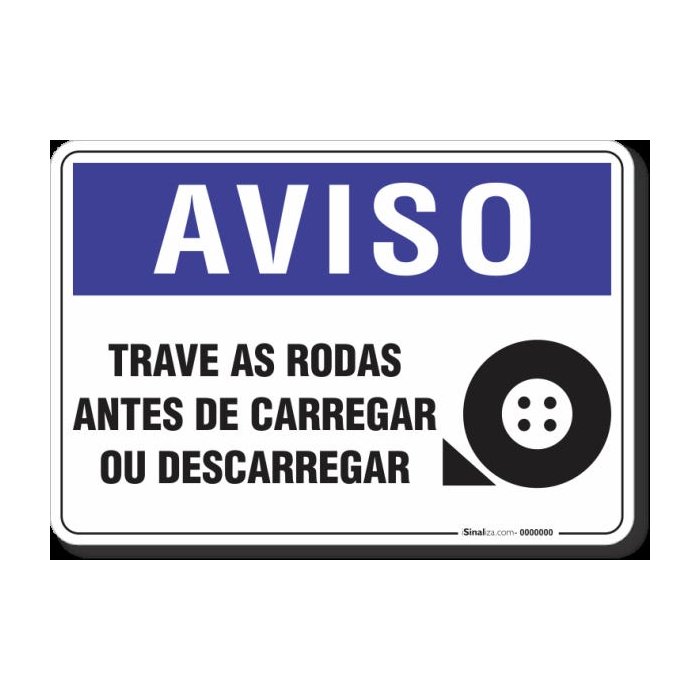 PLACA AVISO TRAVE AS RODAS ANTES DE CARREGAR OU DESCARREGAR