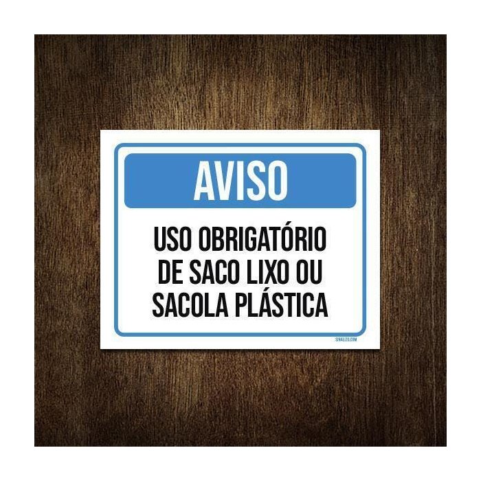 Placa Aviso Uso Obrigatório Saco Lixo Sacola Plástica 36X46