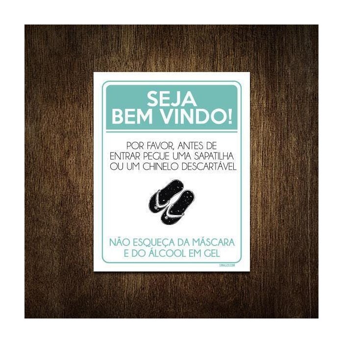 Placa Bem Vindo Pegue Sapatilha Chinelo Descartável 27X35