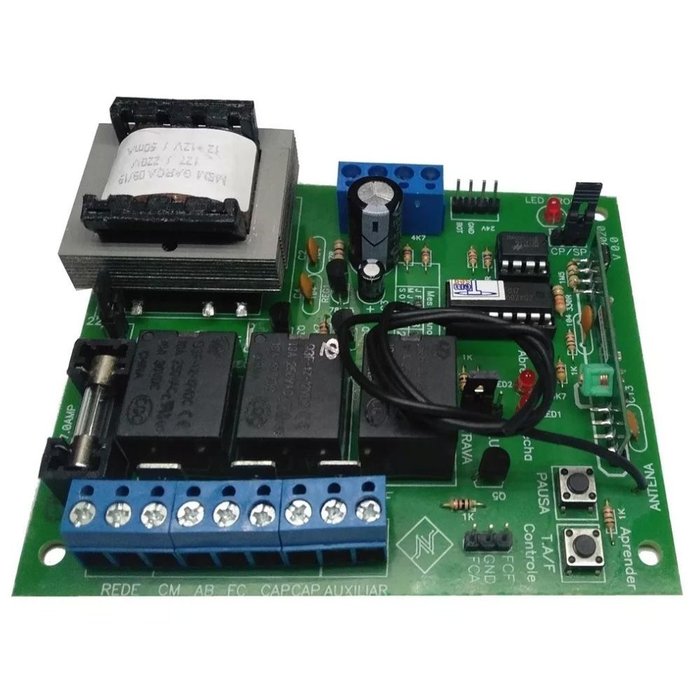 A Placa para Portão Automático Modelo NB3020 da New Back com receptor incorporado multi códigos aceita todos os controles na frequência 433,92Mhz, ideal para substituir centrais de Portões com melhor custo beneficio do mercado.