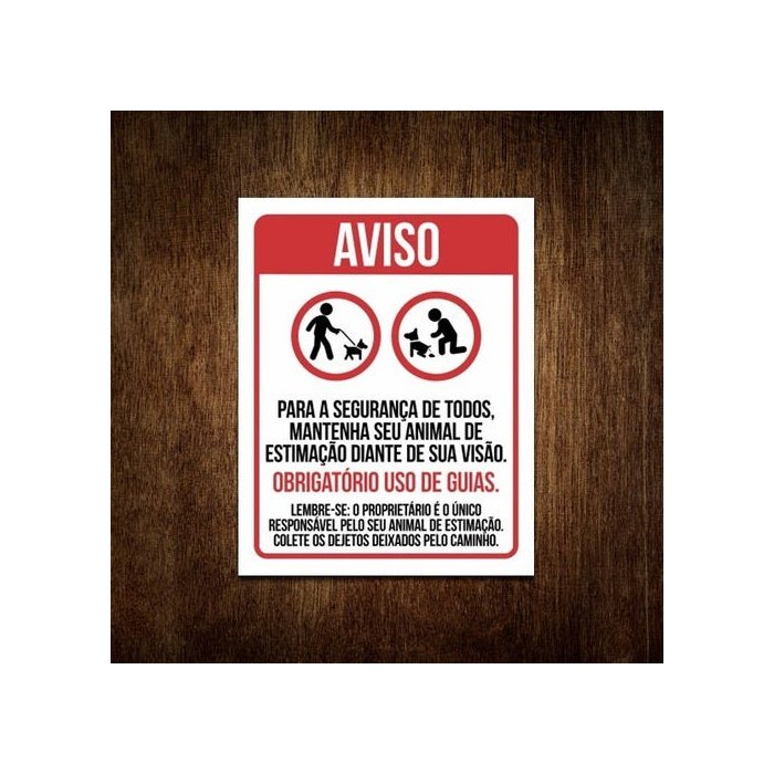 Placa Condomínio Obrigatório Guias Segurança Animal 27x35