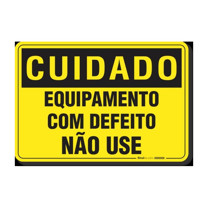PLACA CUIDADO EQUIPAMENTO COM DEFEITO NÃO USE