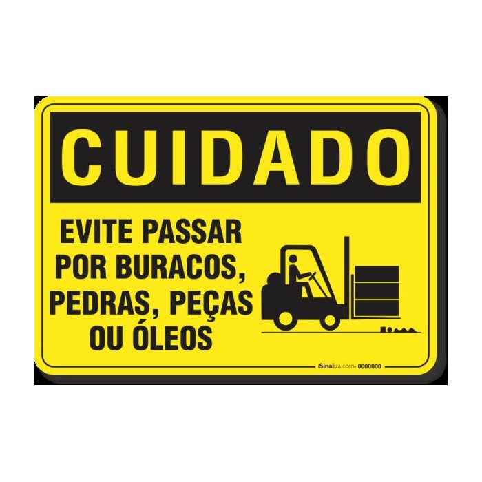 PLACA CUIDADO EVITE PASSAR POR BURACOS PEDRAS PEÇAS OU ÓLEOS