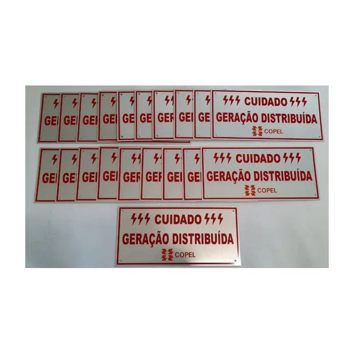 PLACA GERAÇÃO DISTRIBUÍDA COPEL 10X21CM ALUM 0,4MM 2 CORES CORTE RETO 4 FUROS LISA - Padrão COPEL C/ 50un