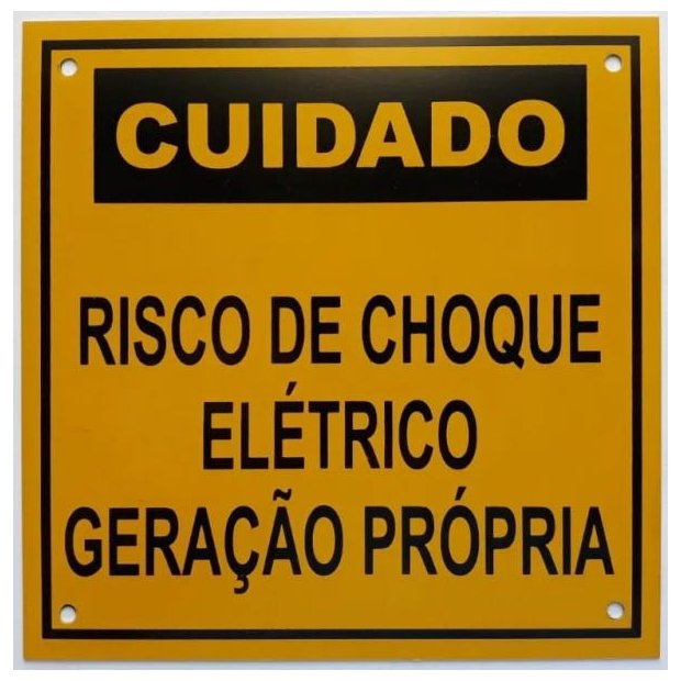 - Utilizada para advertir e sinalizar o perigo de choque elétrico proveniente de um gerador de energia elétrica: solar, eólica, hidráulica ou moto geradores.
