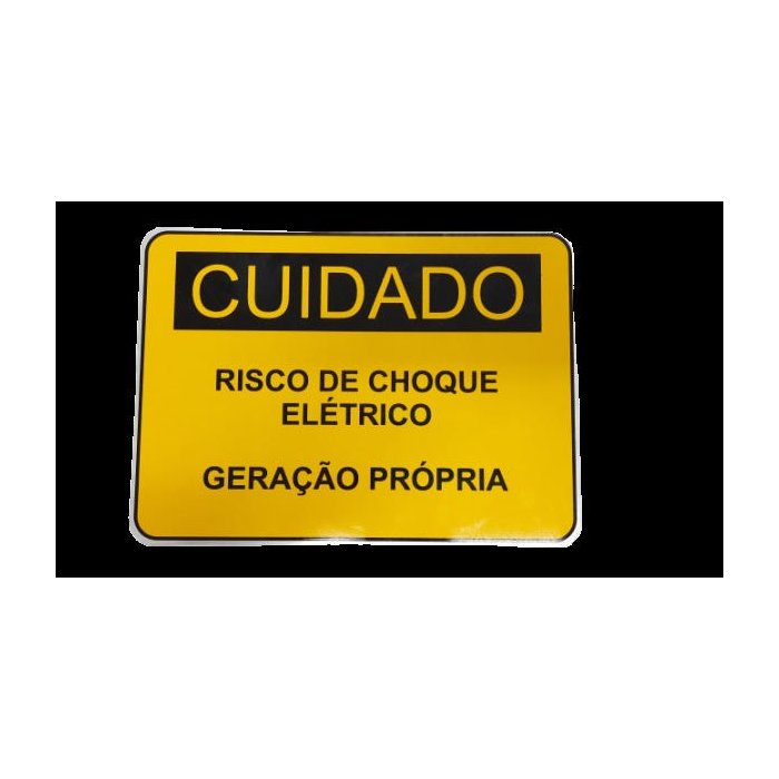 - Utilizada para advertir e sinalizar o perigo de choque elétrico proveniente de um gerador de energia elétrica: solar, eólica, hidráulica ou moto geradores.