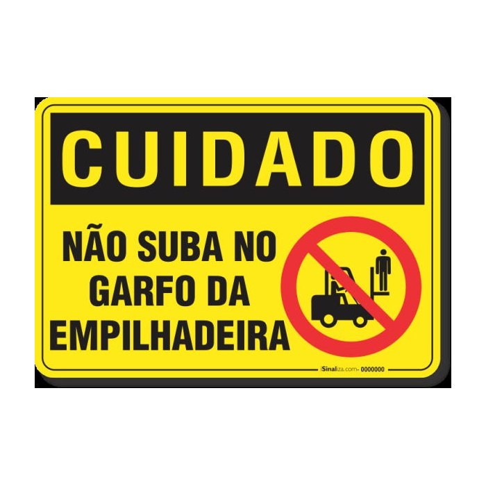 PLACA CUIDADO NÃO SUBA NO GARFO DA EMPILHADEIRA