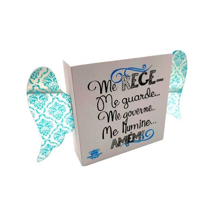 Placa de Mesa de Madeira com Asas em Acrílico "Me Rege, Me Guarde, Me Governe, Me Ilumine, Amém!" Azul